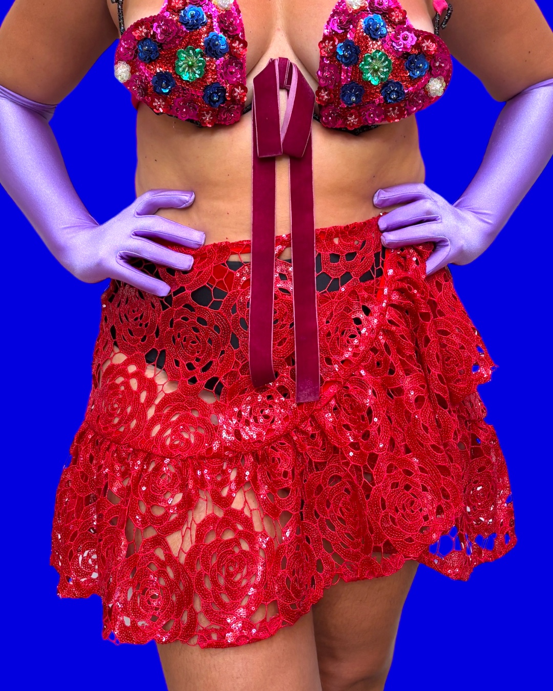 Com tecido super especial de guipir com lantejoulas, com recortes em formato de rosas, essa saia tem o que amamos: volume, brilho, transparência e versatilidade.