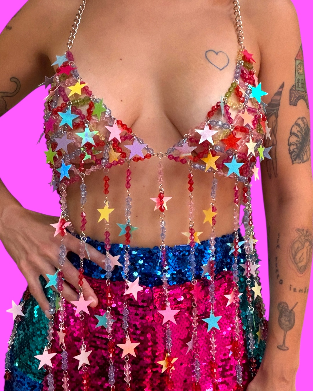 Todo feito em miçangas coloridas, com aplicação de estrelinhas furtacor! Um mimo!